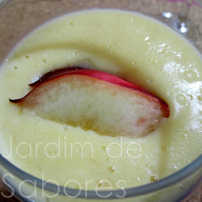 2 copos de leite * 2 colheres de sopa de amido de milho * 2 nectarinas * 4 colheres de sopa de açúcar